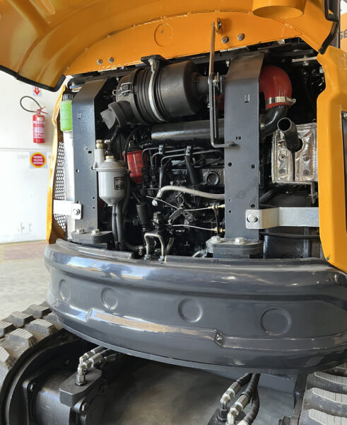 - O conceito de “Giro Zero” (Zero Tail Swing): Essa é uma das maiores inovações da categoria. Em muitas mini escavadeiras, o contrapeso traseiro da máquina não ultrapassa a largura das esteiras ao girar o eixo central. Em português claro: se a máquina passar por um corredor estreito, ela consegue girar sua cabine 360 graus para descarregar a terra sem que a “traseira” bata na parede do vizinho. É liberdade total de movimento.